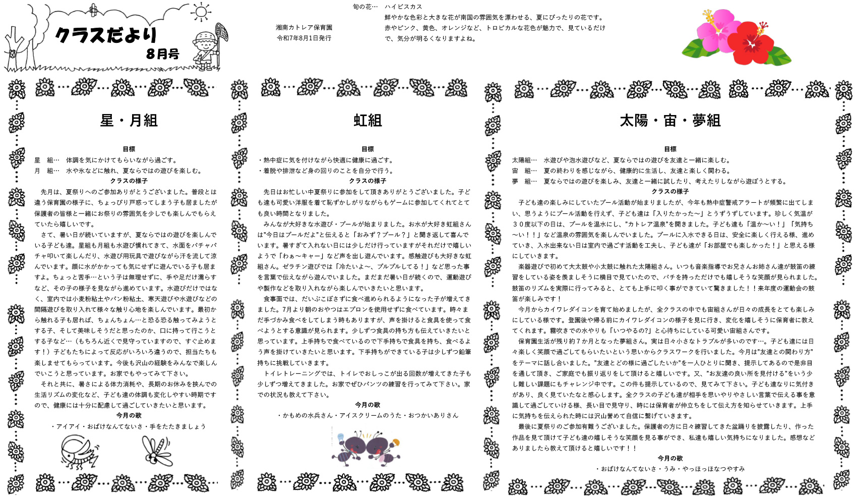 8月のクラスだより|厚木市にある認可保育園の湘南カトレア保育園です。
