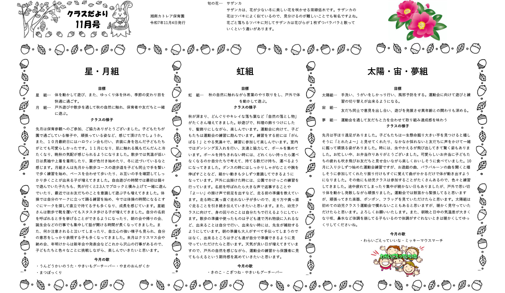 11月のクラスだより|厚木市にある認可保育園の湘南カトレア保育園です。