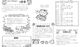 蒸し暑く雨の多い日が続き、戸外活動になかなか行けない日が多かった6月でしたが、7月は子どもたちの大好きなプールの季節です。今月は天気に恵まれて、たくさんプール...